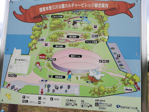 自動車で湾岸線、国道1号線、23号線の南から木曽三川公園輪中のさと(フットサルコート)に向かう場合、施設周辺に駐車場の案内はありません。北から施設に向かう場合は駐車場案内の看板はあります。南から施設に向かう場合、施設の門が見えたら入ってください。そこが駐車場の入り口です。カーナビの指示を待っていたり、他の入り口を探していると施設周辺約6キロくらいを一周走行し、また施設の門に戻って来ます。施設関係者も南からの北上線に駐車場の案内を設置してくださればいいと思いますが…初めて本施設に行くほとんどの人が駐車場を探すのに...
