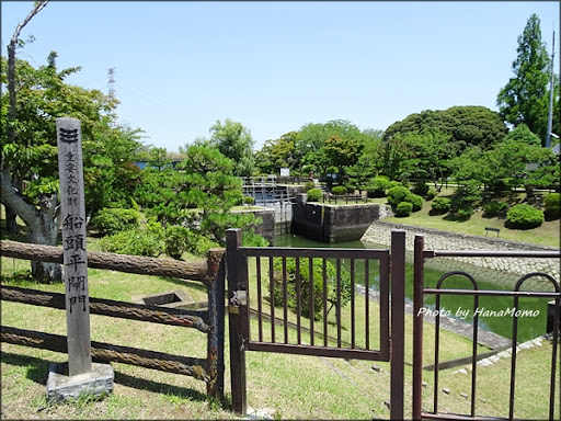 船頭平公園で蓮の花を撮ってから少し歩いて行くと船頭平閘門(重要文化財、平成12年5月25日指定)でした。 当時は貨物や旅客の輸送のための舟運が盛んで水面の高低差がある木曽川と長良川を従来できるように閘門(こうもん)が造られました。 閘門は復開式で門扉が二重になっており、わが国でも初めてのものです。 平成6年に活用保全の方針で老朽化対策工事が行われ 現在も有効に機能しており、その土木技術は歴史的に貴重なものです。 ・・と検索先で載ってました。
