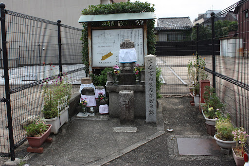史跡 平安宮跡 内裏跡(内郭回廊跡) (案内板) 天皇の居所である内裏は、内外二重の郭で囲まれ、内側を内郭回廊と呼び、築地を挟んで内と外に回廊がめぐり、衛士らが厳重に警護していた。発掘調査では、下立売通の北と南側で内裏西面内回廊跡の西・東辺の一部が見つかり、凝灰岩で構成された回廊基壇石や河原石を敷き並べた雨落溝を検出、さらに南面内回廊跡では、内裏内の水を外へ排出するための暗渠跡も見つかっている。内回廊の基壇は、調査の結果から幅が10.5mと判明し、内裏の南西にあった朝堂院の回廊(11.58m)よりも狭いことがわかっている。現在、当該地は国の史跡に指定され遺構が保存されている。 平成20年3月 京都市 (案内板) This area is located to the southwest of the Budomon gate in the southwestern part of the inner palace, and a part of the inner lining of the Heian shrine was excavated in 1969 and 1948. A row of stones on the east-west edge of the corridor was confirmed to be about 27 m, and the width of the platform was found to be 10.5 m. Due to the excavated roof tiles, it is considered to be the corridor at the time of reconstruction in 1157. This stone marker shows the remains of the corridor. It was designated as a historic site as "Heian Palace Toyorakuden Ruins" in 1979, but in 2008 it was integrated with "Heian Palace Toyorakuden Ruins" (designated as a historic site in 1990) to "Heian Palace Ruins". The designated name was changed to "Horakuin Ruins". (Kyoto City)