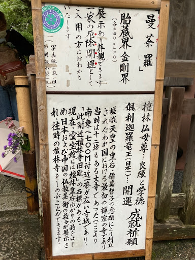 Read more奥嵯峨を散策中たまたま通りかかり、面の看板が気になり入ってみました。 受付はあるのに人がおらず、拝観料等どうすれば…と困っていたら掃除をしていた年配の男性が対応してくれました。 お金を払ってパンフレットを受け取り、さあ中を見ようと思ったらその男性のお話がはじまりました。 こちらのお寺の説明、この周辺の歴史について等々。 色々と聞かせていただきました。 その方に皇帝ダリアが綺麗に咲いているから、是非見ていってくれと薦められました。 とても立派に咲いていました。 庭園はこじんまりしていましたが、手入れは行き届いている印象でした。 本堂に入ると一本木の昇り竜などがあり、簡単に説明をしていただきました。 参拝客は私達を含めて数人… 御朱印は書置きでした。手書きの書置きのなかと思ったら、よく見るとパソコンで印刷したようなものでガッカリしました。 正直そんなに参拝客が来そうにもないのに書置き…それも手書きなのは日付のみ。年月日の日のみが手書きという事にとても残念な気持ちになりました。余りにもお粗末なのでは。