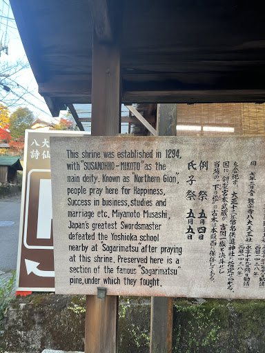 Read moreMost of the guides said that this was the place where miyamoto musashi challenged the head of the prestigious yoshioka fencing school and won, birthing his famous 2 sword style. which is not 100 percent true it is very close to the site and also has a piece of the tree that musashi used to fight around but the original site is about 300m down the road which I found by accident. But to be honest there isn't much here unless you are a fan of musashi. It's pretty out of the way and there are a lot of shrines that I would consider better "bang for your buck" for lack of a better phrase. But if you are a musashi fan,...