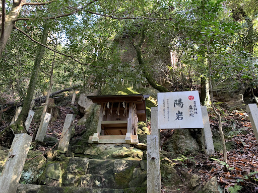 赤い鳥居が連なる山道を登ること10分余り。 奥の院に祀られている二つの岩。 ひとつ目の陰岩に到着。 参拝後、続けて陽岩までさらに5分弱。 ありがたく参拝して下山しました。