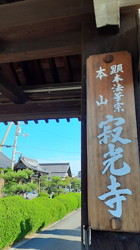 駒札: 寂光寺 妙泉山(みょうせんざん)と号する顕本(けんぽん)法華宗の寺院である。 寺伝によれば、天正六年(1578)にに日淵(にちえん)上人により創建され、はじめ久遠院(くおんいん)と号し、室町出水(上京区)にあったが、後に寺町二条(中京区)、更に宝永五年(1705)にこの地に移った。 当寺二世の日海(にっかい)は、寺内塔頭の本因坊に住み、本因坊算砂(さんざ)と号した。算砂は碁技を仙也(せんや)に学び、当寺敵手なく、織田信長から「名人」の名を贈られた。次いで、豊臣秀吉、徳川家康に碁を教えた。以降本因坊の名勝は、碁界家元の地位を持ち、技量卓抜なものが襲名継承することとなった。二世算悦(さんえつ)、三世道悦(どうえつ)を経て四世道策(どうさく)の時、本因坊は当寺から江戸に移った。 寺内には、本因坊の算砂、算悦、道悦の墓があり、寺宝として、算砂の画像や近衛関白家より拝領の唐桑(からくわ)の碁盤等を蔵している。 京都市 (現地駒札より) plaque: Jakko-ji Temple This is a Kenpon Hokke sect temple called Myosen-zan. According to temple legend, it was founded by the monk Nichien in 1578 and was originally called Kuon-in and located in Muromachi Izumi (Kamigyo Ward), but later moved to Teramachi Nijo (Nakagyo Ward) and then to this location in 1705. The second head priest of the temple, Nikkai, lived in the Honinbo subtemple within the temple and called himself Honinbo Sanza. Sanza learned go from Senya, and was unrivaled by the temple's opponents, receiving the title of "master" from Oda Nobunaga. He then taught go to Toyotomi Hideyoshi and Tokugawa Ieyasu. From then on, the famous place of Honinbo held the status of a head of the go world, and the name was passed down to those with outstanding skills. After passing through the second head priest San'etsu and the third head priest Do'etsu, the fourth head priest Dosaku, Honinbo moved from this temple to Edo. The graves of Honinbo Sansha, San'etsu, and Do'etsu are located within the temple, and temple treasures include a portrait of Sansha and a Karakuwa go board bestowed by the Konoe regent. Kyoto City (From an...