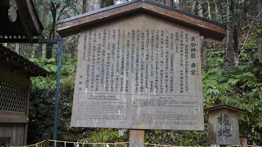 The founding place of Kifune Shrine, it is a sacred place surrounded by forest. According to the enshrining legend, the holy boat that Tamayori-hime rode in is said to have been surrounded by stones to avoid attention. The stones, covered in moss, are even now enshrined at the inner shrine of the rear shrine. Directly below the inner shrine is a large hole called the âryuuketsu,â dragonâs den, upon which the shrine was built. Since the ryuuketsu is a sacred place that should not be seen by people it is forbidden to be viewed by anyone and is counted amongst Japanâs Three Great...