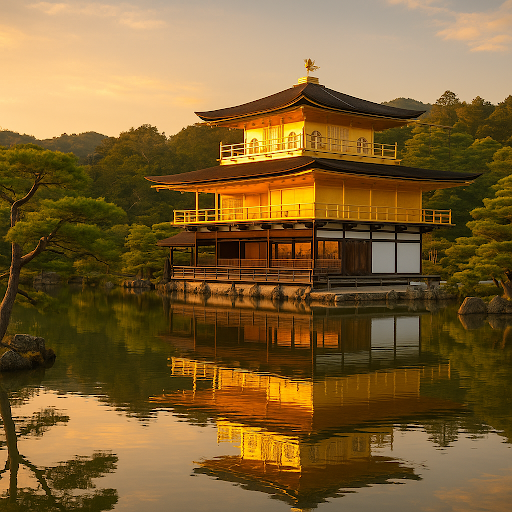 Kinkaku-ji, a Zen Buddhist temple originally built in the 14th century, is famous for its stunning architecture, with the upper floors covered in gold leaf. The temple’s grounds are a prime example of Japanese garden design, and Kyōko-chi Pond plays a significant role in this, symbolizing the harmony between nature and human craftsmanship.
