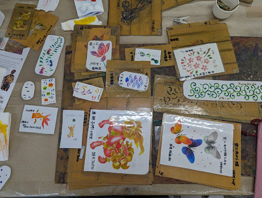 I didn't know anything about kyo yuzen dye before this workshop, and participating in the craft helped me appreciate it more. It's easy to learn, but difficult to master! The Marumasu Nishimuraya workshop makes this craft accessible for beginners. My companion (who describes himself as "not artistic") had a fun time choosing stencils (they literally have hundreds of them) and customizing them.