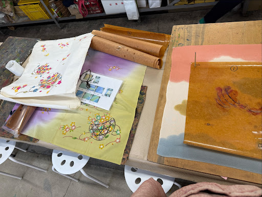 If you're looking for a relaxing and traditional crafting activity in Kyoto, I would highly recommend this kyo yuzen dyeing museum / studio / workshop. It's definitely a hidden gem, located in the very back of a side street (past a couple of shops). It's about a 10 minute walk from the Shinmachi Oike subway station.