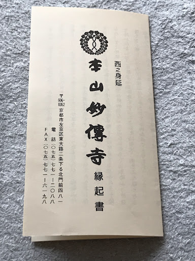 日蓮宗本山 正法華院法鏡山 妙傳寺縁起 当山は円教院日意上人によって文明九年(1477)に開創された日蓮宗の本山で京都八本山の一つに数えられています。 始め豪商・妙善(桑名家)の帰依を受けて京都一条尻切屋町に堂塔伽藍が建立されました。(第一の妙傳寺)開創に当たり日意上人は、師の日朝上人と図り宗祖日蓮大聖人の御真骨を分骨泰安し、更に身延影現・神霊七面天女と同木同体の御霊体を安置しました。故に当山は「西之身延・妙傳寺」と称され、総本山身延山・久遠寺への参拝が困難な当時、関西以西の日蓮宗信者はこぞってこの「西之身延・妙傳寺」に参拝したと伝えられています。 その後、天文五年(1536)に起こった天分法難により全山悉く灰燼に帰しますが、同十年(1541)新たに四条西洞院に再建されました。(第二の妙傳寺) 更に天正十九年(1591)第六世慈眼院日恵上人の代、関白豊臣秀吉により京極二条に移転を命ぜられます。(第三の妙傳寺)この時、一条家、四条家の菩提寺となり寺勢大いに興隆したことから日恵上人は中興の祖と仰がれています。 第十四世には勇師法縁の縁祖である法性院日勇上人が猊座に就かれます。日勇上人は学徳高く、後水尾天皇の后(中宮)・東福門院より金門袈裟を賜ります。更に山科後に護国寺を開山し、子弟教育のため山科檀林を開かれました。また第十六世には通師法縁の縁祖・寂遠院日通上人が歴世に就かれます。 しかしその後宝永五年(1708)、宝永の大火により再び全山が灰燼に帰しますが、第二十九世住心院日義上人は現在の地に再興し(第四の妙傳寺)、第三十五世了遠院日勤上人は説法一万座に及び現在の本堂を建立されました。 創建以来、度重なる移転と焼失を繰り返しながらも身延門流の直系、京都の触頭として本山の威容を保ち現在に至っています。 (現地妙傳寺縁起より) Nichiren Sect Head Temple Shohokkein Hokkyozan Myodenji Engi This temple was founded in 1477 by Enkyoin Nichii Shonin as the head temple of the Nichiren sect and is counted among the eight main temples in Kyoto. Initially, a temple complex was built in Ichijo Shirikiyacho, Kyoto, after the wealthy merchant Myozen (Kuwana family) converted to the temple. (The first Myodenji) When the temple was founded, Nichii Shonin, in cooperation with his teacher Nichicho Shonin, divided the bones of the founder of the sect, Nichiren Daishonin, and enshrined the spirits of Minobu Kagegen and the Seven-Faced Heavenly Maiden, which are in the same body and tree. Therefore, this temple was called "Minobu Myodenji in the West" and it is said that at a time when it was difficult to visit the head temple Minobu-san Kuon-ji, Nichiren sect believers from the Kansai region and west flocked to this "Minobu Myodenji in the West". Later, in 1536, the Tenbun persecution reduced the entire temple to ashes, but in 1541, it was rebuilt at Shijo Nishinotoin (the second Myoden-ji temple).