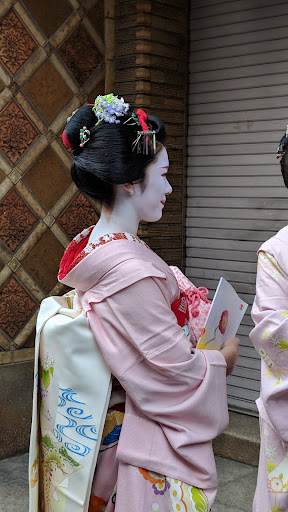 We arrived early to attend the tea ceremony with real geishas. While the setting was special, the ceremony itself felt a bit rushed—just tea and a sweet in a crowded room, with no explanation or context. Still, we got to keep the small plate as a souvenir, which was a nice touch.