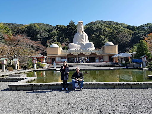 Read moreThe Ryōzen Kannon (Goddess of Mercy) Temple is a war memorial for the dead of the Pacific War located in Eastern Kyoto. The concrete and steel statue of the Bodhisattva Avalokiteśvara was built by Hirosuke Ishikawa and unveiled on 8 June 1955 (69 years ago). The statue is 24 m high and weighs approximately 500 tons. The shrine beneath the statue contains an image of Bodhisattva Ekādaśamukha and images of the god of wind and god of thunder. After paying the 200 yen entrance fee, visitors can place a stick of incense (given them at the entrance) in a large pot just beyond Kagami Ike (Mirror Pool) Other Buddhist statues and a memorial Buddhist footprint can be found in the garden area of the temple.