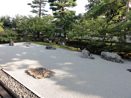 普段は非公開です。春と秋に特別公開されます。 開山堂はその名のように開山夢窓国師の木像を安置している堂で、法堂の東にあり、境内で最も大切なところです。応仁元年(1467)応仁の乱の兵火で焼失し、寛文六年(1666)後水尾天皇が、皇子桂宮第三世穏仁親王のために再建されましたが、又天明八年(1788)天明の大火で焼失します。現在の建物は江戸時代末期に桃園天皇の皇后、恭礼門院の黒御殿を賜って文化四年(1807)に移築、仏堂として用いられるように増築や一部改造を行なったものです。現在は前方の礼堂と、この奥に続く中央の祠堂とから成り、開山堂としての一般的平面をもっています。 正面奥には相国寺開山夢窓国師を安置し、西の壇には仏光国師像、仏国国師像、普明国師像、足利義満像を安置し、東の壇には相国寺有縁の宮家の位牌や像を安置しています。 開山堂の南庭は、手前が白砂敷きの平枯山水、奥部が軽くなだらかな苔地築山となっていて、その間を幅五尺ほどの小川が流れていましたが、昭和十年頃に水源が途絶えてしまいました。この流れは上賀茂から南流する御用水『賀茂川~上御霊神社~相国寺境内~開山堂~功徳院~御所庭園と流れていた水流』を取り入れたもので寺ではこれを『龍淵水』と称し、開山堂をでてからの水路を『碧玉構』と称していました。 相国寺開山堂の庭は、厳密にいえば、築山と流れの「山水の庭」と、御影の切石に縁取られた白砂に庭石を配置した「枯山水平庭」の、二様の形態の庭がひとつに同居しているわけで、しかもこの二様の庭が一体となって連繁を保っている面白い形式です。 (出典:相国寺HP) It is usually private. It will be open to the public in spring and autumn. Kaisan-do, as its name suggests, is a hall where a wooden statue of Kaisan Muso Kokushi is enshrined. It is located in the east of the temple and is the most important place in the precincts. In the first year of Onin (1467), it was burnt down by the fire of the Onin War, and after the sixth year of Kanbun (1666), Emperor Mizuo was rebuilt for Prince Katsuramiya III, Prince Katsura, but again in Tenmei 8 (1788). ) It will be burned down by the great fire of Tenmei. The current building was relocated in 1807 with the empress of Emperor Momozono and the black palace of Kyorimonin at the end of the Edo period, and was expanded or partially remodeled to be used as a Buddhist temple. Currently, it consists of a chapel in the front and a central shrine that continues to the back, and has a general plane as Kaisando. In the back of the front, the statue of Soseki-ji Kaisan Muso Soseki is enshrined, the statue of Buddhist priest, Buddhist priest, Buddhist priest, and Ashikaga Yoshimitsu are enshrined on the west platform. The mortuary tablets and statues of the Miyake are enshrined. In the south garden of Kaisando, the foreground is a dry dry garden with white sand, and the back is a light and gentle moss ground artificial hill. I have. This flow incorporates the water that flows south from Kamigamo, "Kamogawa-Kamigorei Shrine-Sokokuji Precincts-Kaizando-Koutokuin-Gosho Garden and the water flow that was flowing", and this is called "Ryubuchimizu" at the temple. The waterway after leaving Kaizan-do was called "Aotama structure". Strictly speaking, the garden of Shokokuji Kaizan-do has two types of gardens: the "Sanmizu Garden" of artificial hills and streams, and the "Kaizan Horizontal Garden" where garden stones are placed on white sand bordered by Mikage's cut stones. It is an interesting format in which these two gardens are united and maintain a continuous prosperity. (Source:...