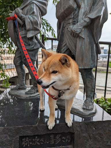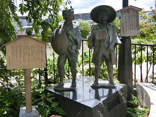 Read moreDuring the Edo Period the Tōkaidō road became the most important route from Japan, connecting the capital Kyoto to Edo, the Tokugawa shogunate's city.The most popular way to travel the Tōkaidō was of course by foot. number of people traveling through the Tōkaidō route just for sightseeing started to rise after the appearance of a book, Tōkaidōchū Hizakurige, which told the story of two travelers, Yajirobē and Kitahachi, known today as Yaji-san and Kita-san. Their story was filled with all sorts of amusing adventures taking place between Edo and Kyoto.The statue of Yaji and Kita is reminiscent of their advenureous journey along the Tokaido, to pray for the safety of travelers who have visited Kyoto, and for the safety of those about to embark on...