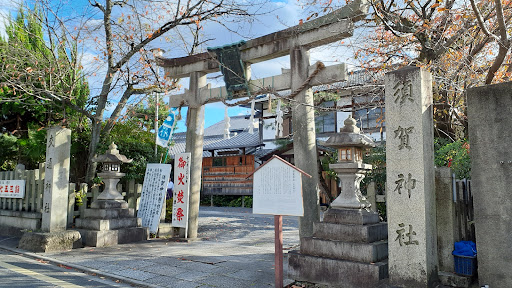 駒札: 須賀神社(交通神社) 平安時代末の康治元年(1142)、美福門院(びふくもんいん)の建てた歓喜光院(かんきこういん)の鎮守として創祀されたもので、祭神は素戔嗚尊(すさのおのみこと)、櫛稲田比売命(くしいねだひめのみこと)を主神に、久那斗神(くなどのかみ)、八衢比古神(やちまたひこのかみ)、八衢比売神(やちまたひめのかみ)を加え、五柱を祀る。 もとの社地は平安神宮蒼竜楼の東北にある西天王塚で、当社は岡崎の東天王社と相対して古くは西天王社と呼ばれた。その後、吉田神楽岡に転じ、今の地に移ったのは大正13年(1924)のことである。 聖護院一帯の産土神(うぶすながみ)とされ、また縁結び、厄除け、交通安全の神として崇敬厚く、ことに節分祭には参詣者で賑わう。五月十日の神幸祭は角豆(ささげ)祭といい、氏子の家々には遠くの縁者も集まる。ささげのつる葉に多くのさや豆がつくように氏子の繁栄を祝う意味であろう。 京都市 (現地駒札より) Pieces: Suga Shrine (Traffic Shrine) It was established in 1142 at the end of the Heian period as the guardian of Kankiko-in, which was built by Bifukumon-in, and the enshrined deities are Susanoo-no-mikoto, The main deity is Kushinedahime-no-Mikoto, followed by Kudonokami, Yachimatahikonokami, and Yachimatahime. In addition, the five pillars are enshrined. The original location of the shrine was Nishitennozuka, located to the northeast of Heian Shrine Soryuro, and our company was formerly called Nishitennosha, in contrast to Higashitennosha in Okazaki. After that, it moved to Yoshida Kaguraoka and moved to its current location in 1924. It is said to be the local deity of the Shogoin area, and is also highly revered as the god of matchmaking, warding off evil spirits, and traffic safety, and is especially crowded with pilgrims during the Setsubun Festival. The Shinko Festival held on May 10th is called the Sasage Festival, and distant relatives also gather at the houses of parishioners. It probably means celebrating the prosperity of the shrine parishioners, like the many green beans that appear on the leaves of a cowpea vine. Kyoto City (From the...