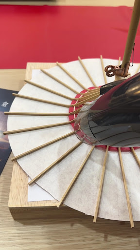 Don’t worry about slight imperfections, especially toward the center where the bamboo bones are tight together and it’s hard to shape the paper. I had some wrinkles in the paper near the center and they were all covered up by the topper at the end. In any event, the imperfections are also part of my unique creation, priceless and impossible to replicate :)