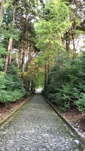 そこに立った時、胸を鷲掴みにされたようでした。 森の中に真っ直ぐに伸びる参道。 そこにいるのは自分だけ。 朝の静寂の中、聞こえてくるのは鳥の囀りだけ。 その中をコツ・・コツ・・コツ・・と踏みしめて歩いていきます。 水面の上を波紋を静かに立てながら歩いているかの様です。 神聖とはこのことを言うのだろう。