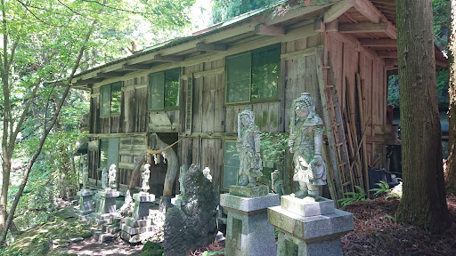 Read more勾配の急な杉林の最上部にある巨大な崖下をえぐり取った窪みに、南向きにお堂があり、不動尊が祀られている。お堂の裏に並みいる杉の中でも、群を抜いて幹が太くてスラリとした杉が一本、敢然と空を突き上げている。聞こえるのは遥か下を流れる粕川の絶え間ないせせらぎのみ…。周辺は視界を阻む厚い杉林で覆われ、微妙に妖気を含んだ大気が漂っていて、並々ならぬ幽邃の雰囲気が溢れている。不動尊の下からではなく、前不動🅿️を更に進んだ林道三叉路から下って参拝する。それにしてもよくもまあこんな山の奥に祀ったも...