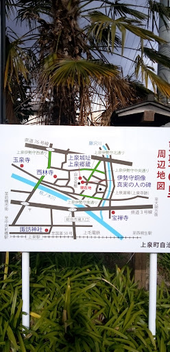 Read more上泉城は剣聖と称された上泉伊勢守信綱の出生地とされ、上泉氏の居城でした。大胡城の支城として築かれ、信綱は箕輪城主・長野氏に仕えていましたが、武田信玄の侵攻で長野氏が滅ぶと武田氏に臣従し、「信玄」から一字を与えられ「信綱」と改名。その後、将軍・足利義輝にも剣術を伝えました。遺構はほとんど残っていませんが、剣聖上泉伊勢守の顕彰碑と銅像が建っています。ボタンを押すと自治会館のスピーカーから「剣聖上泉伊勢守の歌」...