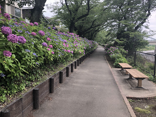 川沿いのまっすぐな一ぽん道を走るランナー、かわいいワンちゃん達の散歩、大勢の大人たちが夢中で楽しむ野球、グランドゴルフを楽しむご年配の笑顔。その他お弁当を食べたり、読書をしたり、ただ川風を感じに来てる人達など多くの人の憩いの場。
