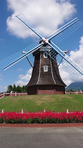 散歩がてらぶらりと行ってみた。(初) いやはやここも広い👀、(2時間たっぷり下り上りの道で・・)。 道の駅として1995年(H17.4/11)登録、大きなオランダ型風車(1991年.H3高さ22m.羽で直径18.8m.1分間に3,6回転、設置)が目玉の道の駅。(映像参照豪快)(ランドマークは、北関東一のオランダ型風車)とか。
