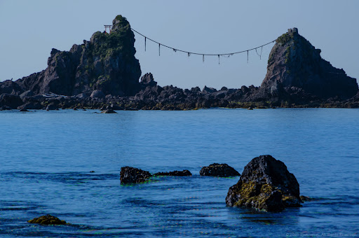 My photo shoot at Cape Manazaru was focused primarily on Mitsuishi, a group of 3 large rocks just off the coast of the cape. The two larger rocks (sea stacks) are united by a shimenawa rope, and if you walk out to the rocks during low tide, you can also see a red torii gate on the larger rock. Although the Mitsuishi rocks are not as famous as the Meoto-Iwa, or the Married Couple Rocks, in the sea off Futami in Mie Prefecture, the Mitsuishi rocks are still a very popular destination to visit on the morning of New Year's Day to watch the sun as it rises from under the rope between the two rocks. Check out my Pix4Japan YouTube channel for footage I took at this location: Seascape Photography in Japan: "Cape Manazuru in...