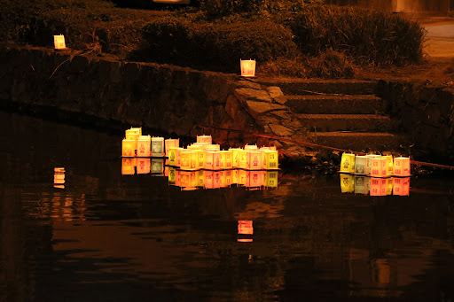ちなみに2018の燈籠流しは、台風の影響による風のせいで綺麗...