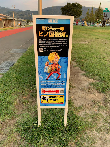 サンジ像は、令和元年(2019年)に熊本県と熊本県出身の漫画家・尾田栄一郎さんが描く人気漫画『ONE PIECE』とが連携した復興プロジェクト〈麦わらの一味「ヒノ国」復興編〉の一環として、益城町交流情報センター...