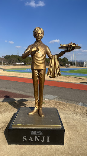 Read moreHere for Sanji...! 👨🏼🍳 If you park your car beside the field, in front of the Mashikicho Koryujoho Center, walk towards right at the playground side and you will spot him soon enough beside the running track area! You can get Sanji gold figurine inside the Mashiki City...