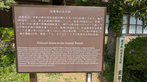 2019年3月23日訪問 栃木県益子町ですが最寄駅は真岡鉄道七井駅から約5km、近道もあるらしいですが案内板今一、芳賀富士手前最後お寺までやや登ります。 平貞能、元々平氏一族から庶子として分かれ家人として平清盛の専一腹心の者と吾妻鑑に書かれるが 清盛死後補佐していた重盛系は傍流となり、鎮西の反乱を一時鎮圧するも木曾義仲日対しては都落ちよりも決戦主張 1183年平家が九州を追われると出家して離脱 1185年平家滅亡後縁者の宇都宮朝綱を頼り投降、頼綱が京都から東国に戻れたのは貞能の配慮によるもので其れに対する恩返し? 源頼朝も万一の事が有るとか可也渋ったらしいですが、最終的に認められ平重盛の菩提寺として那須塩原市妙雲寺・茨城県城里町小松寺と自身の菩提寺として安善寺と仙台市に西方寺と西国ではなく北関東に平氏関連の史跡を訪問出来ますがそれぞれ可也離れていて安善寺の場合、宇都宮氏関連史跡なら近いです。 1194年地元の豪士河原小籐治光直の協力で建立され、赤い屋根の本堂は1730年に再建されたものとか。 3月末行きましたが可也寒く普段は住職さんは常駐で...