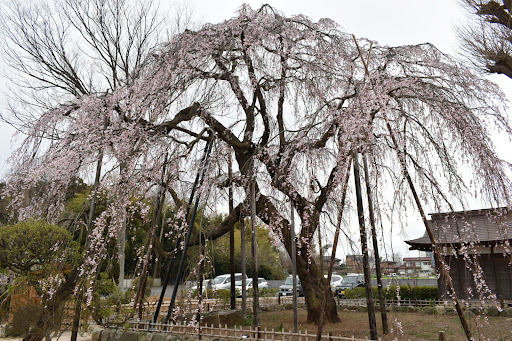 Read more室町時代中期の1450年頃に創建されたと伝わる古刹で、江戸時代には当地方の本寺として53ヶ寺の末寺を有し、子弟養成の専門道場として隆盛していたという。当地はかつて放牧地であった小金牧にあり、小金牧の牧士頭を務めた綿貫家の墓所でもある。 1984年、檀信徒の浄財をもって本堂を改築し、2018年には庫裡・客殿が建て替えられた。 東国花の寺百ヶ寺霊場(千葉1番)に指定されている当院には、幹廻り1.5m、高さ約10m、樹齢350~400年といわれる近隣にも類を見ない大きさのシダレザクラがあり、流山市の保存樹木に指定されている。日当りの良い境内にそびえ立ち、3月下旬~4月上旬の開花期には絵のような美しさを見せてくれ、開花期にはライトアップされ幻想的ですばらしいとのことであるが、訪れた6月は葉桜であった。サクラ以外の花では、ウメ、シダレモモ、ツツジなどの花木があり、早春から春にかけて趣のある花景観を展開し、参拝客を満足させてくれる。境内には日本庭園などもあり楽しめる。また、境内には、流山七福神めぐりの...