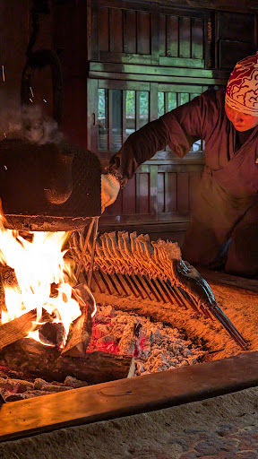 Read moreAbbiamo mangiato e dormito qui una notte sulla strada per Karasawa. Il posto è bellissimo, e quel giorno eravamo solo noi e un'altra ospite in un'altra stanza. Le ragazze e le signore che lavorano in cucina erano molto gentili e allegre. I due signori che gestiscono l'irori un po' taciturni, ma uno di loro è stato molto cortese quando gli abbiamo parlato e siamo riusciti a comunicare in pochino a gesti e con Google translate anche se non parliamo giapponese. C'era un ragazzo giovane che parla un po' di inglese e aveva dei modi un po' strani. Quando ci chiamava per cena e colazione bussava molto forte alla porta e guardava dentro la stanza dallo spiraglio. L'abbiamo trovato un po' strano e invadente. Il mattino dopo il checkout pioveva forte e faceva freddo e gli abbiamo chiesto se potevamo aspettare che smettesse un'ora la pioggia prima di metterci in cammino. Ci ha fatto cenno di stare fuori! Allora abbiamo chiesto all'altro signore del falò che per fortuna ci ha fatte rimanere senza problemi ad aspettare al caldo vicino al fuoco. Una nota per i vegetariani: io sono vegetariana e mi avevano già detto un mese prima quando ho prenotato di portare cibo dalla pianura perché a kamikochi non si trova. Mi sono portata qualcosa da Tokyo e una volta lì ho chiesto se per caso si poteva avere un piccolo piatto caldo vegetariano per cenare con la mia amica. Il ragazzo mi ha proposto un "set tempura" per 2000 yen. Mi è sembrato tanto ma ho accettato. Si trattava di un piccolo piatto con quattro verdure raccolte nei dintorni e una ciotolina di riso. Decisamente caro! Se siete vegetariani vi sconsiglio di soggiornare qui. Non è vero che a kamikochi non si trova cibo vegetariano, le altre due notti siamo state in un altro albergo dall'altra parte del fiume dove ho mangiato una cena vegetariana grande e buonissima e anche alla baita di Karasawa non ci sono stati problemi. Anche nel negozio del campeggio vicino alla fermata del bus si può trovare tanto cibo vegano e vegetariano. La mia amica che ha mangiato il pesce però ha detto che era molto buono. È giusto che qui ci vada chi mangia pesce, ed ero stata avvisata. Avrei solo trovato più corretto che davanti alla mia richiesta il ragazzo mi avesse detto che non era possibile darmi cibo vegetariano, o che mi avesse fatto un prezzo più basso per quel minuscolo piatto di wild plant tempura che a loro non è costato niente, soprattutto perché ho pagato come la cena della mia amica che ha avuto riso, tempura, miso,...