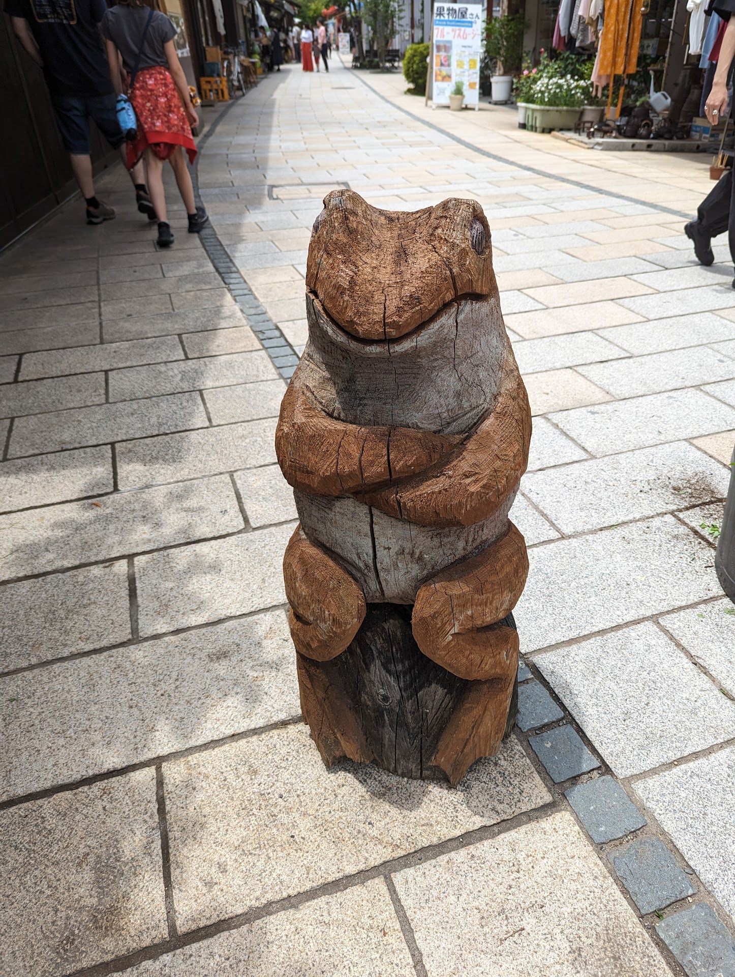 The atmosphere is quaint, with small, locally owned shops selling traditional snacks, handmade crafts, antiques, and quirky frog-themed souvenirs (a fun nod to the street’s frog mascot). You’ll also find a few cozy cafes and sweet shops where you can stop for a quick bite or soft serve ice cream.