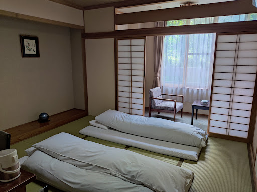 I highly recommend saying in this inn if you are in the area. While the rooms are a bit dated, I really appreciate the cozy feel of a tatami mat room. The meals were spectacular, with a private charcoal grill for every table. This is by far the best kaiseki meal I've had, it's very traditional with many types of pickles, and not over the top. The breakfast was equally delicious. If you prefer to stay in a newer hotel, you should definitely come here for the onsen because they have natural hot spring water with sulfur. It seems like the only one with cloudy water in the area, and it really feels good to relax in the onsen while looking at the stars. I highly recommend visiting, if just to relax in the...