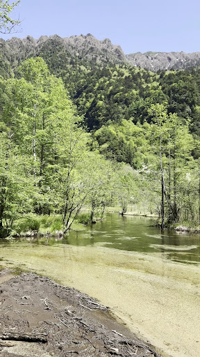 大正池から森を歩いて行くと、突然目の前が開ける所があります。そこが田代湿原です! ツツジの色と緑のコントラストも綺麗ですし、目線を上げれば穂高連峰が一望できます。 ここは本当に綺麗!同行者と「夢の中にいるみたいだね〜」と言っていました。