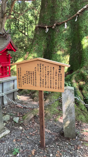 神社裏手に聳える神木の大楠は推定樹齢1000年以上、樹高35m、根回り29m、樹...