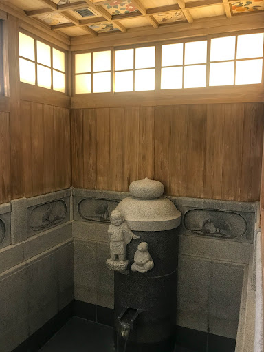 The welcoming sculpture with calligraphy 水流香 smiling in the entrance hall emphasised the history in of this hot spring. As the background of this entrance, there is a large 3D painting the symbol of Dogo onsen (yudama) with wakugi nails (the nails that last thousands of year) that stunning your eyes, this is the big symbol of yudama (symbol of Dogo onsen) with traditional wakugi nails (the nails that last thousands of year). There is also the zeolite washi paper (ゼオライト和紙) completely build the warm atmosphere of this entrance. All these things not only warm your heart but just like time machine take you in the oldest Dogo. You can healing your body in the exclusive special bathing room with the hot water and the beautiful ceiling with the paintings. It is said that this room is the replica of the Yushinden ( Dōgo Onsen Honkan’s bathing room for the imperial family). In 2nd floor, you can find private resting room with the corridor from the wood. The wood smelling mixed with the old Japanese interior, and some how make you feels like you in the past...