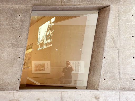 I can’t read Japanese. But the architecture here is something you can’t miss. The whole building is a concrete triangular prism. The centre piece is the long concrete staircase. There is another spectacular installation. Go to 2/F or 3/F. There is a balcony facing Bansuiso. The glass installed below the handrail is styled with ripples. I looked from inside the museum towards Banduiso. The glass looked like a pond with ripples. Above the “pond”, it was Bansuiso and the greenery. I don’t think this is not...