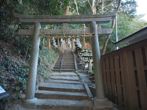The honden (main shrine) of Kumomi Sengen-Jinja Shrine is located near the summit of a large rock called Mt. Eboshi (162 m / 531 ft). This large "rock" is actually just a volcanic neck, which refers to a large hill formed when magma in a volcanic vent has cooled and solidified.
