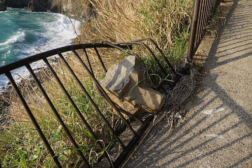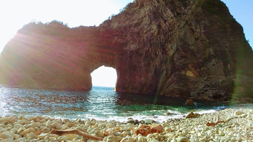 Read more2020年12月末訪問。雲見温泉のバス停の近くにあった案内板を頼りに小さな山を越えて徒歩15分くらいでビーチに着きます。遊歩道入口に「通行止め」看板が設置されていたので躊躇しましたが、ちょうど向こうから帰って来るカップルがいたので聞いてみたら「通れますよ」とのことなので行ってみることに。遊歩道はほとんどがコンクート舗装されていて、歩きにくいということはありませんでした。ただ一部落石で崩れている箇所もあり、崖から小石がパラパラ崩れてきているので雨風が強いときは厳しいかもしれません。肝心の千貫門はコバルトブルーの海にどどーんと鎮座していてとってもダイナミックな絶景です。こんなすごい景色なのに壊れた柵を放置したままな...