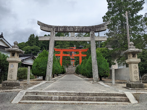 鳥居は数え漏れがなければ7基、石の大鳥居(一の鳥居、明神鳥居)、五の鳥居(両部鳥居)以外は稲荷系の台輪鳥居。石段下の三の石鳥居は大正の修理では大鳥居とされており、現在の一の鳥居・二の鳥居は昭和以降の新設ということになる。 創建が古いため(とはいえ勧請元の伏見稲荷より古いなどということはあり得ない)社格の割に社殿は小さく本殿一間・拝殿三間の入母屋造。須佐之男命を祀る八重垣神社、伊耶那美命を祀る冥府神社も一間社。 稲荷系に...
