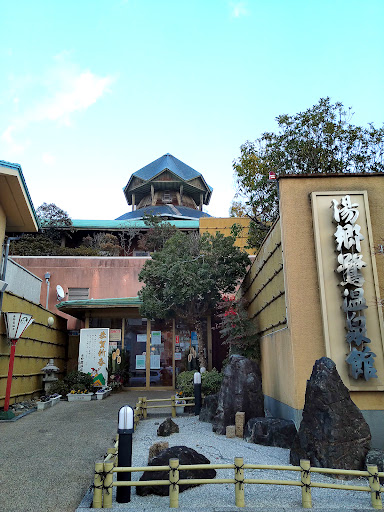 泉質は皮膚炎・消化器病・神経痛・リュウマチ・貧血・婦人病に効果のあるナトリウム・カルシウム塩化物泉。湧出温度は40.2℃。無色透明、極若干の硫黄臭あり。 「動の湯」と「静の湯」があり、屋内にそれぞれ3つの浴場、屋外に露天風呂あり(静の湯の露天風呂は2種)。