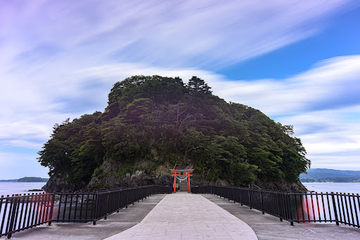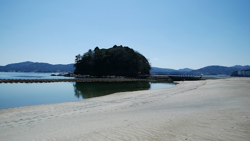 鳥居を潜ると階段があり島に登れます。階段+坂を登ると10分ほどで頂上まで登れます。周りは背の高い木々が生えており、思った絶景は拝めず。さらに奥に行くと島の反対側に降りれるようですが、下は急な坂に見えて途中で断念。道は荒れている部分もあるためスニーカーなどの行動しやすい方が良いかもしれません。