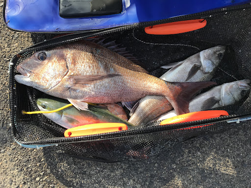 昔より魚種は減りましたが、ブリ・サワラ・ヒラメ・アジ・メバル・カワハギ・真鯛・スズキとちゃんと仕掛けと餌を用意して狙えば色々釣れます。生き餌のシラサエビがオススメです。