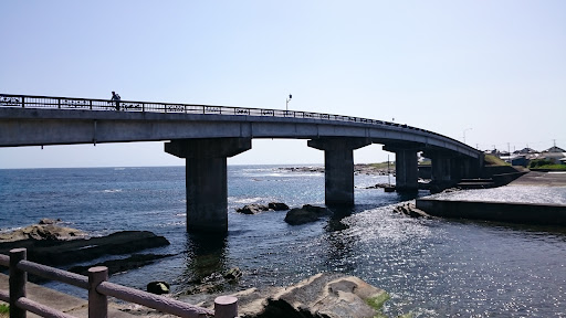 一番の魅力は、やはり眺望の美しさです。海を一望でき、特に橋越しに眺める朝日は最高でした。また、橋の上には小さな展望スポットがあり、一面に海が広がる景色と共に、反対方向の高塚山などの山々も見えるので、景色を見ながらゆっくり休憩するのに最適な場所です。ウォーキングやお散歩にも向いていて、潮の香りの中で散策するのは非常に心地よかったです。