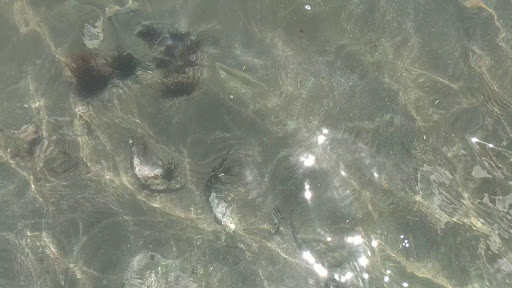 水の透明度はかなり高くて、この日は大潮、朝は満潮で台風のうねりも入って波が高かったですが、昼前には潮がひいて、潮だまりにはカニ🦀や熱帯魚の姿も見れました🐠🐠