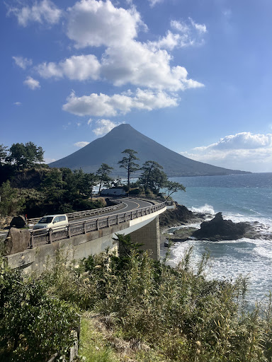 松林から覗く開聞岳がまた素敵です‼️下の砂浜にもん降りれます‼️ 砂浜に降りると、岩を削って作ったトーチカと銃眼がありました。これは太平洋戦争時に旧日本軍が手掘りしたものだと思われます。名もなき戦争の証人がひっそりとありました。後世に歴史を残すためにも、立看板など...