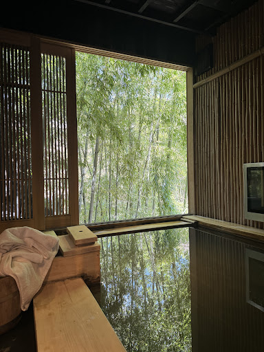 The environment is stunning, nestled in the quiet Kurokawa Onsen Town and surrounded by a gorgeous bamboo forest. Throughout the ryokan they have many beautiful ponds with koi fish, waterfalls, garden longue spaces and more. It's very tranquil and peaceful.