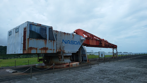 見学可能な小型ロケット発射場(竹崎射場)です。宇宙科学技術館の受付で見学可能と聞いていたものの行ってみると誰一人おらず、研究施設みたいな建物もあるため勝手に入ると怒られてしまいそうな雰囲気でした。 その建物の奥にぱっと見クレーンのようなTR-IAロケットのランチャがあります。 ランチャの先から海岸を前景に大型ロ...
