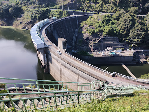 Read more普通のダム。 5月の土曜日の午前中に訪問しましたが、ダムを渡る風が爽やかで、駐車場のベンチで寛いでいる人が数人の静かな場所でした。 広い駐車場とトイレ(和式水洗)と飲み物の自販機があり、ドライブのついでに立ち寄るには良い場所。 管理事務所でダムカードをもらうと月ヶ瀬温泉のダムカレーが...