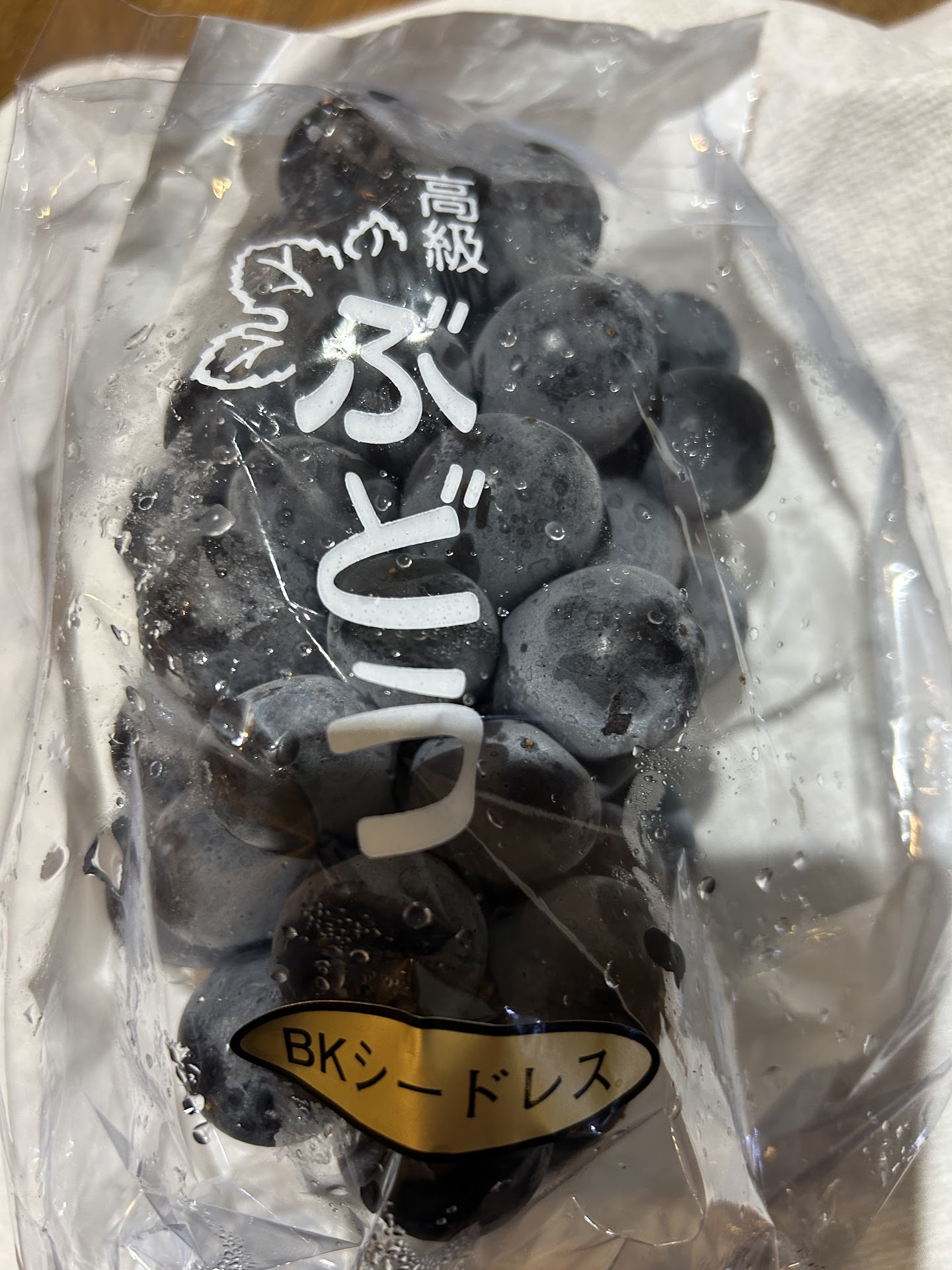 ふらり立ち寄った直売所。ケース内で輝くはBKシードレス。巨峰とベーリーAとの掛け合わせらしい。めちゃくちゃうまかった。感動!お値段は1房4桁いくので普段使いはできないけど、贅沢したい日にはいいですね。甘かったー!