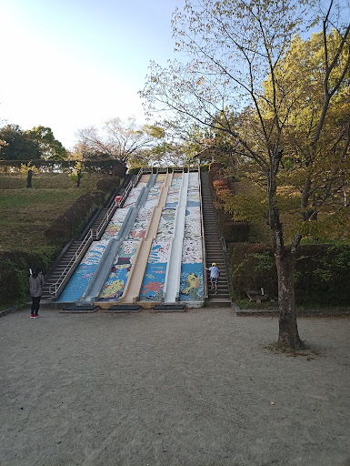 いつも、主人の方の実家へ里帰りした時に遊びに行きます。 遊具で遊ぶエリアと水遊び場(通年かは不明)と芝生広場と野球場と鯉の池などがあります。駐車場もありますが、野球をやっているときは満車になっていました。 石作りの高い滑り台が三つ並んでいて、勢いよく滑れて迫力があり楽しいです。 滑り台の下側に、船の形をしたジャングルジムのような遊具があり、金属製の滑り台が付いています。 その他は、小さな子向けの遊具がちょこっとあって、小さな砂場もあります。 その先にじゃぶじゃぶ池と思われるものがあるのですが、あまりきれいではありません。入るのは自己責任で。昨年のGWに訪れたときは、そこにオタマジャクシや水辺の虫がたくさんいて、子供たちは大喜びで夢中で捕まえていました。じゃぶじゃぶ池へ流れる川の方は、比較的きれいです。 ちなみに、今年のGWは、掃除されていたのか時期がずれたのか、オタマジャクシがいなくてがっかりしていました。なので、個人的に星が3つです。 滑り台の上側にも、ロケット?型のジャングルジム?トンネル?のような横に長い遊具があります。暑い日は、その下に入ると 影になっているので、ひと休みできます。 池は、遊ぶ所から遠いので、特に行くこともなく。鯉がいます。 トイレが所々にあり、ペーパーも基本的に設置してくれているので凄く困ることはありませんが、いかんせん古いのと、水の流れが悪かったり男女兼用だったりします。 芝生広場でボール遊びをしたり、人それぞれの遊びを楽しめて、近くにあったら嬉...